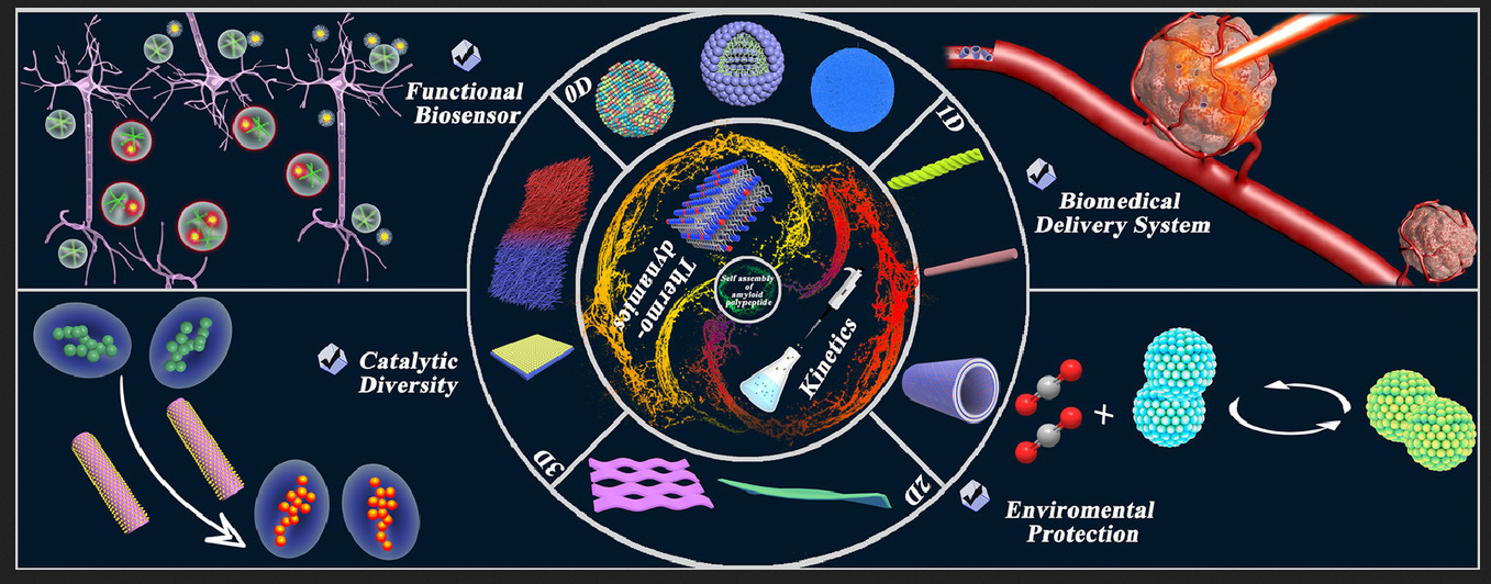 The evolution and current status of amyloid peptide-based nanomaterials on multiple dimensions are discussed.