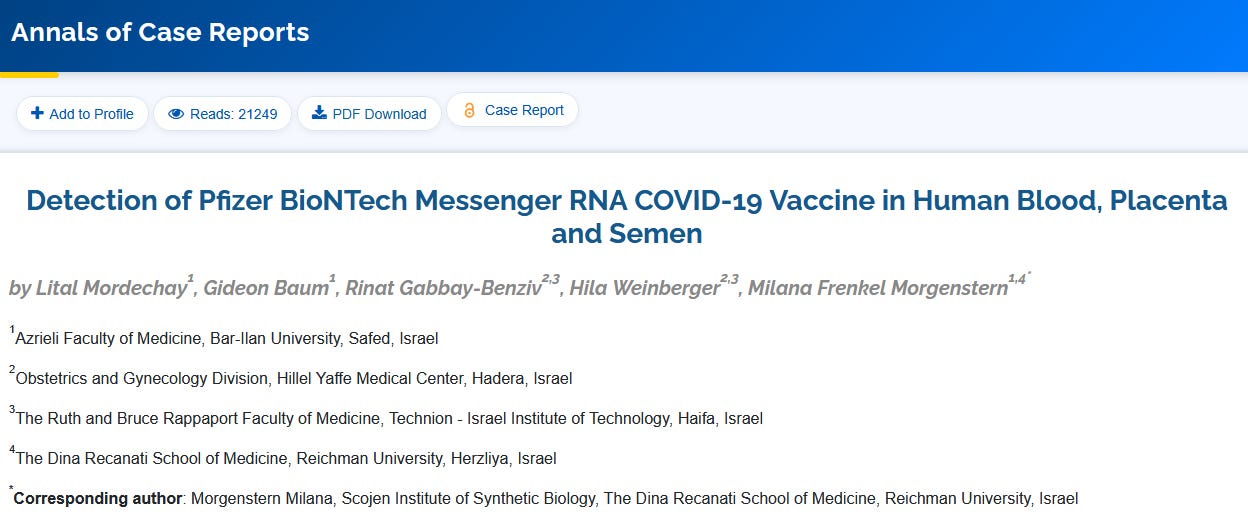 Further Proof Of Shedding: Detection of Pfizer BioNTech Messenger RNA COVID-19 Vaccine in Human Blood, Placenta and Semen: Detects mRNA In Half Of Unvaccinated Women